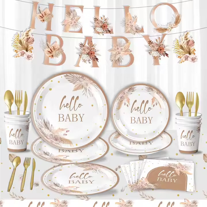 Gør din borddækning ekstra fin med disse smukke servietter med teksten "Baby Baby", pyntet med elegante blomsterdetaljer og en diskret roseguldkant. Perfekte til babyshower, barnedåb eller en sød velkomstfest for den lille pige.