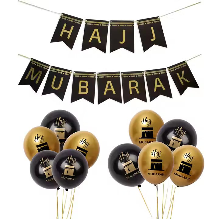 Banner – Hajj Mubarak inkl. 10 Hajj mubarak balloner