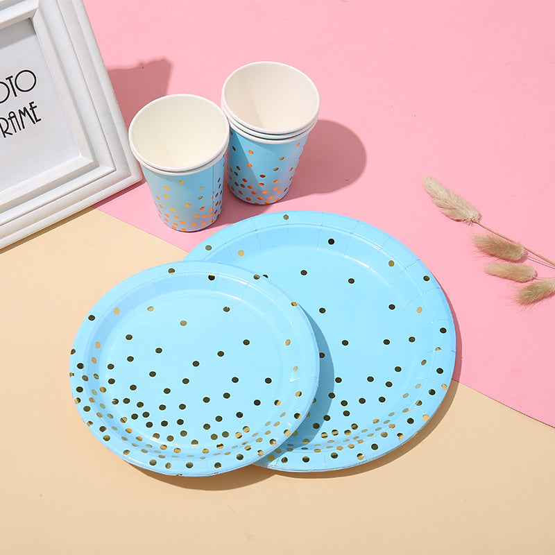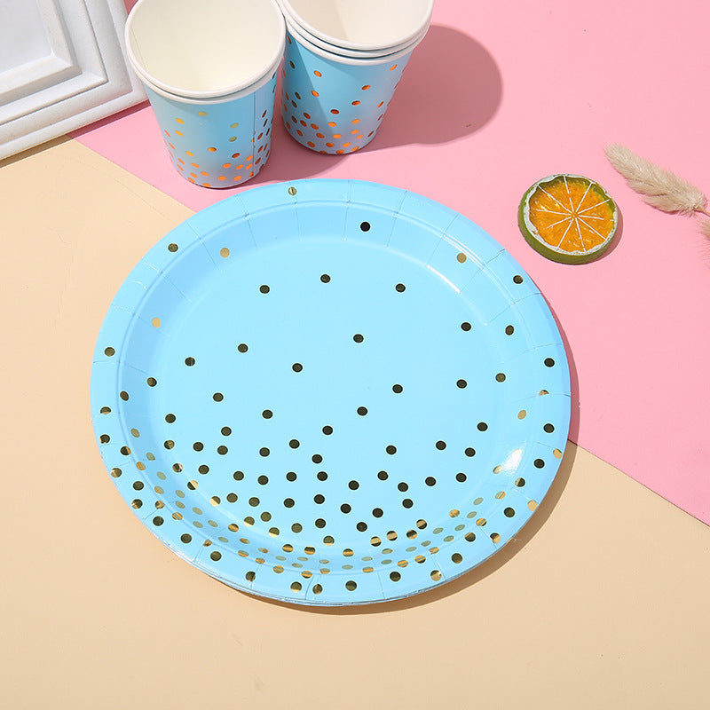 Match dem med blå papkrus, servietter og pynt for en gennemført borddækning, der oser af fest og fødselsdagsglæde!