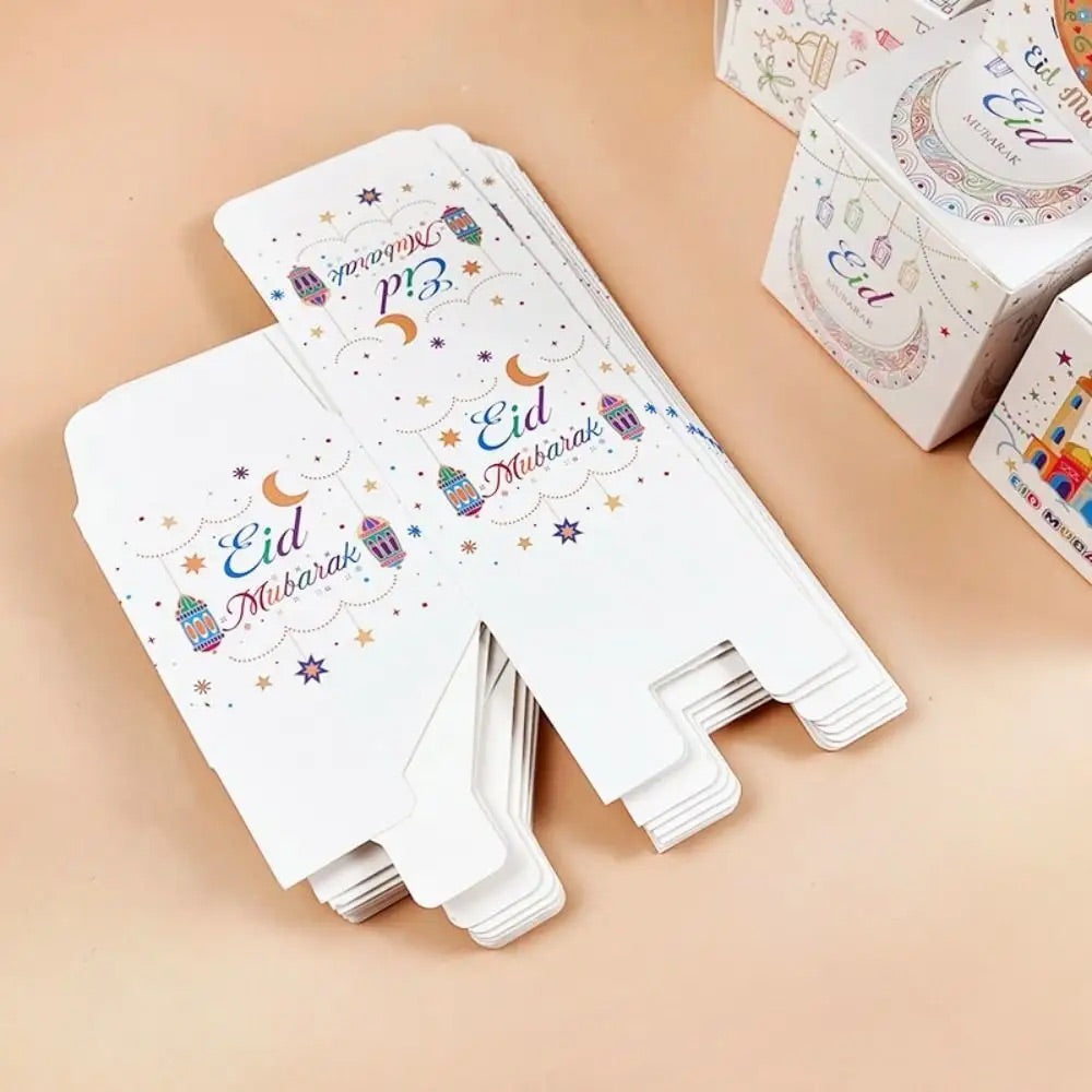 - Elegant Design: Hver gaveæske er smukt dekoreret med festlige motiver og farver, der afspejler glæden ved Eid.