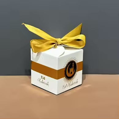 Vores Eid Mubarak æske i hvid med guld sløjfe er designet til at forstærke glæden ved gavegivning og skabe uforglemmelige øjeblikke. Gør din Eid-fejring ekstra speciel med denne smukke gaveæske.