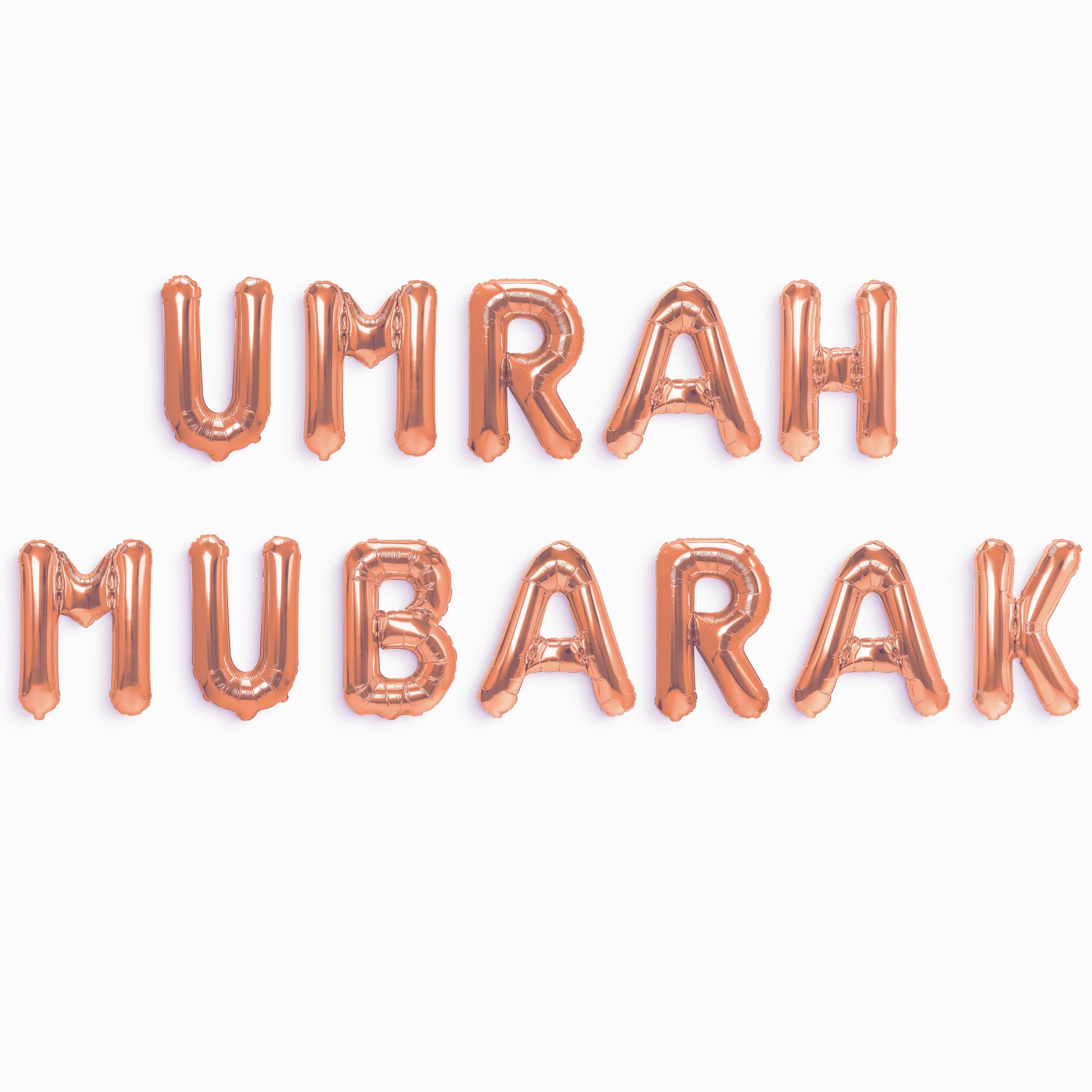 Gør din Umrah-fejring uforglemmelig med vores elegante Umrah Mubarak ballon banner sæt. Dette sæt indeholder 12 stilfulde balloner der til sammen skaber et flot Umrah MUBARAK banner, der tilføjer et eksklusivt præg og glæde til enhver festlig lejlighed.