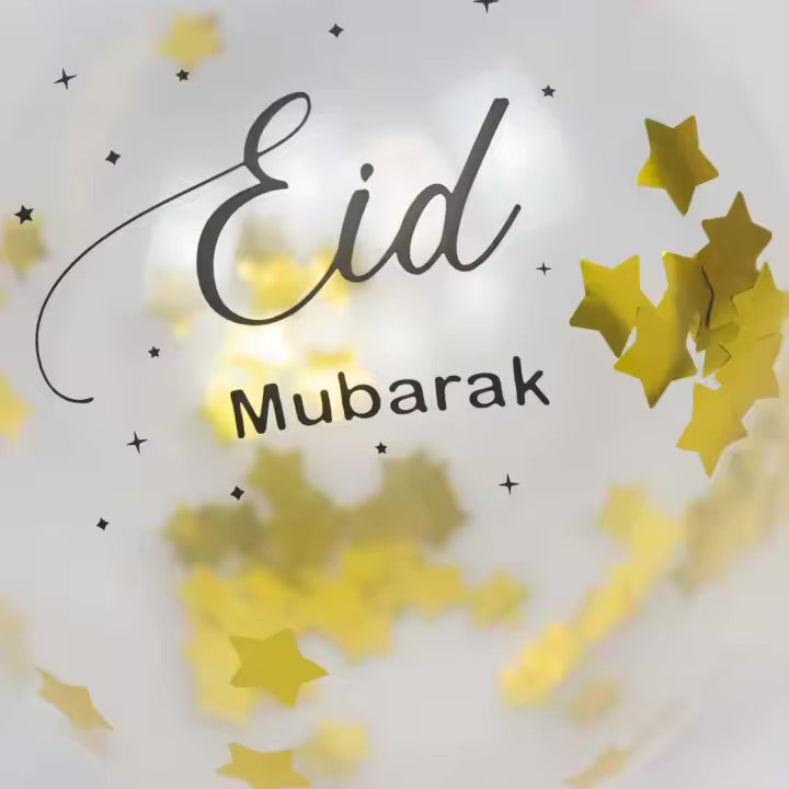 - Festlig Budskab: Ballonen prydes med teksten "Eid Mubarak", der fejrer højtiden med stil og glæde.