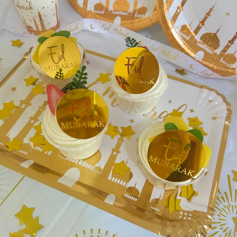 Eid mubarak akryl cupcake topper guld 10 pr sæt
