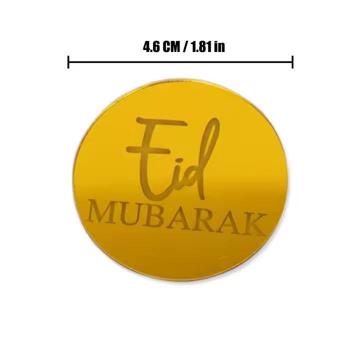 - Elegant Design: Den glitrende guld-finish med teksten "Eid Mubarak" tilføjer et luksuriøst element til dine bagværk og passer perfekt til ethvert festtema.