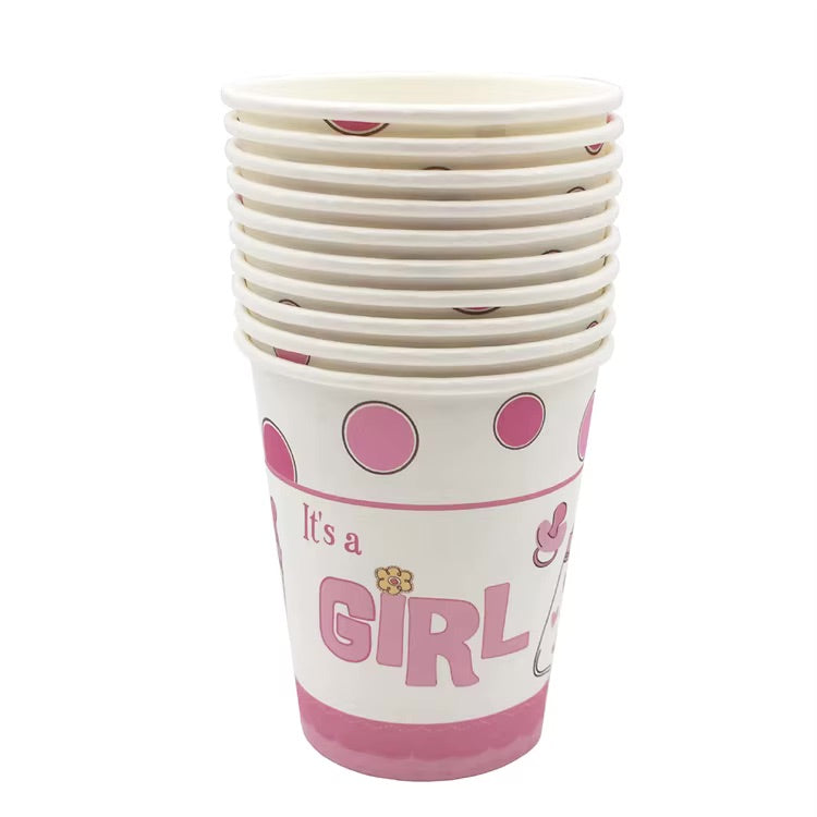 Vores pink baby shower kopper er både praktiske og dekorative, og de er perfekte til at holde din fest både smuk og funktionel. Let at bruge og let at rydde op, så du kan fokusere på at fejre den kommende ankomst af din lille. Gør din baby shower endnu mere speciel med disse fine kopper!