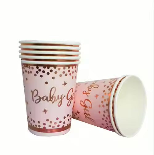 Tilføj et farverigt og festligt touch til din baby shower eller fødselsdag med vores smukke kopper. Perfekte til både varm og kold drikke, giver disse kopper et stilfuldt udtryk, der passer perfekt til alle temaer. Uanset om du serverer juice, kaffe eller cocktails, vil disse kopper være et hit blandt dine gæster.