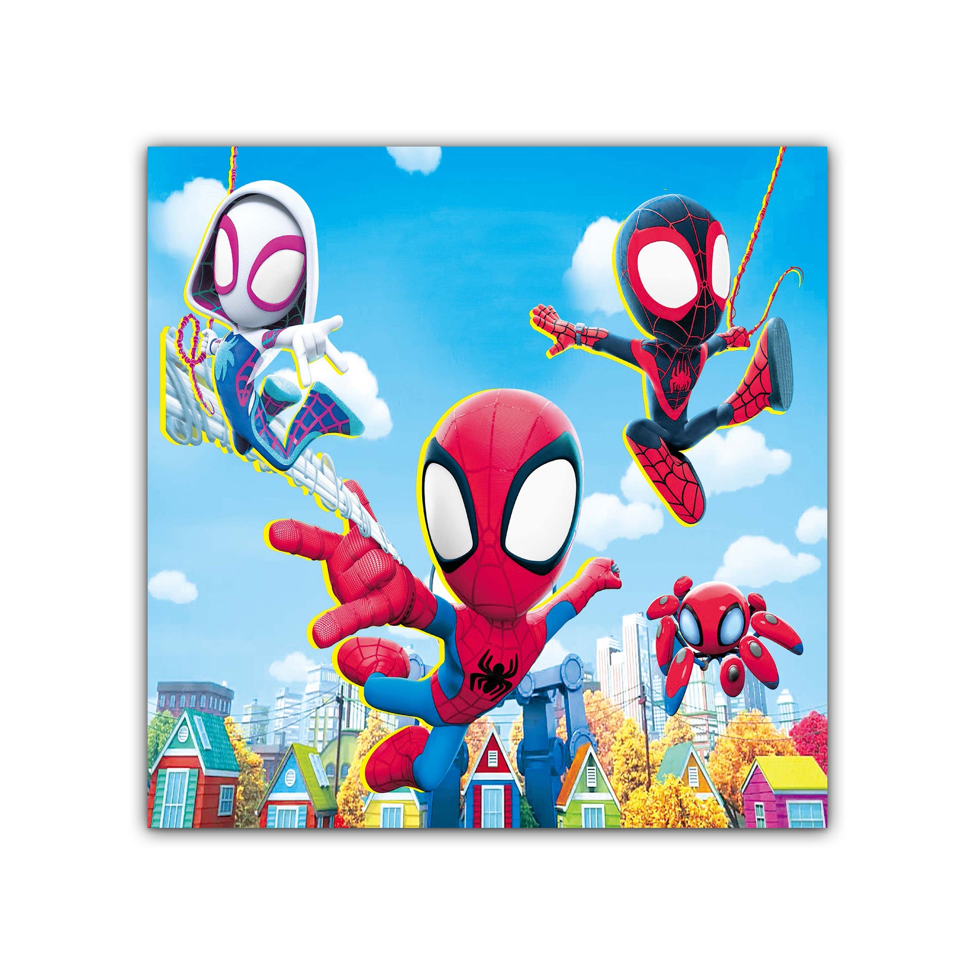 Gør borddækningen komplet med vores seje Spidey servietter! Med farverige motiver fra Spidey og hans fantastiske venner er de både praktiske og superhelte-seje – perfekte til at tørre små fingre (og ansigter) midt i festens kaos.